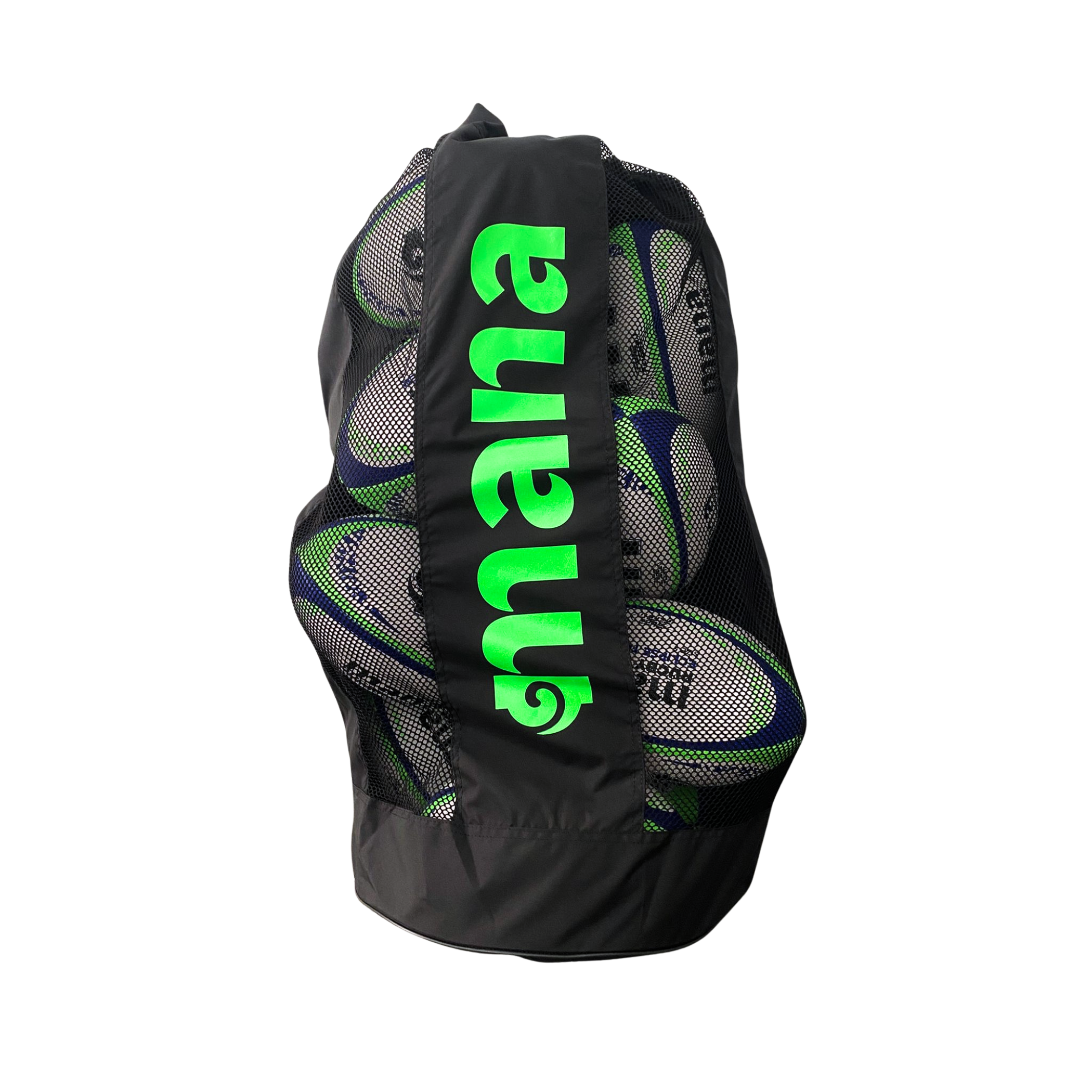 - Heavy-duty rugby ball carry bag made from durable 420D polyester and breathable mesh